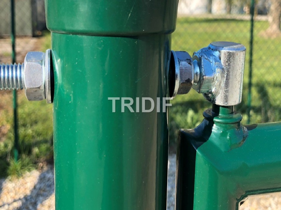 Součástí jsou 2 pantové sloupky průměru 60 mm v síle stěny 3 mm a 4 kusy stavitelných pantů. Bránu lze otevírat dovnitř i ven.