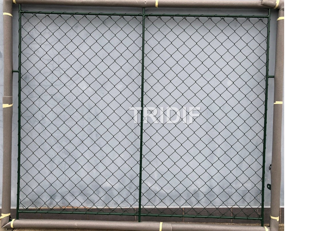 - Branku s výplní čtyřhranného pletiva PVC v ral 6005.