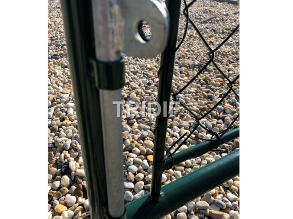 Konstrukce brány je vyrobena z kvalitních a pevných pozinkovaných trubek, vnější rám je průměru 42 mm, vnitřní rám pro pletivo je z pevné kulatiny o průměru 14 mm.