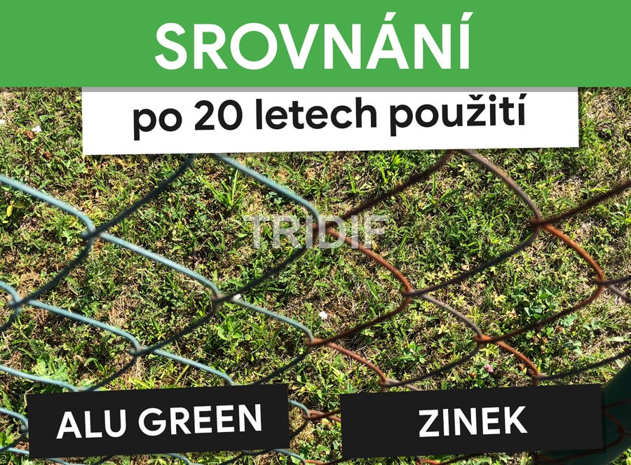 Ve fotogalerii u produktu naleznete srovnání  Zinkového pletiva  a  pletiva Alu green po 20 letech.