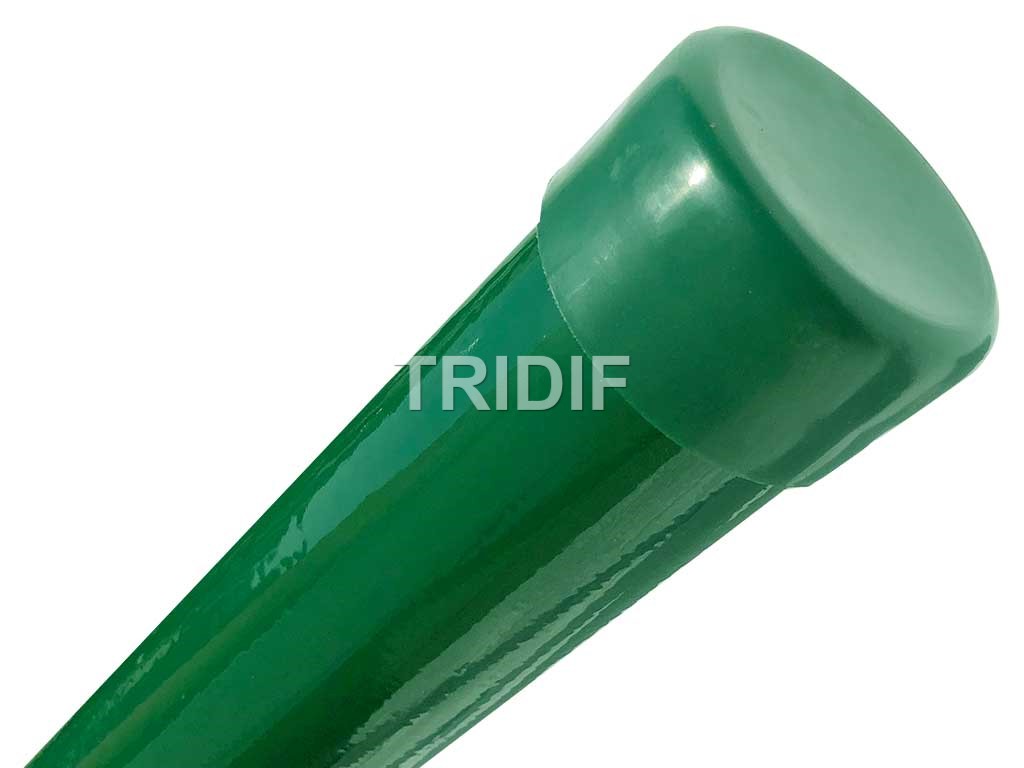 Následně je sloupek komaxitován barvou RAL 6005 jedlová zeleň. Sloupek je uzavřený plastovou čepičkou zelené barvy.