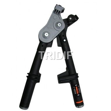 - Rozevřením rukojeti na maximum uvolníte zajišťovací třmen a umožníte nasunutí drátu do kleští.