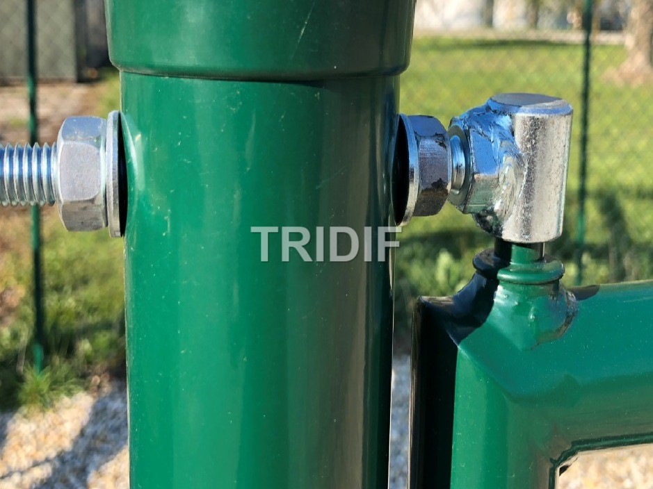 Konstrukce branky je vyrobena z pevných pozinkovaných trubek, vnější rám je průměru 42 mm, vnitřní rám pro pletivo je z kulatiny o průměru 14 mm.